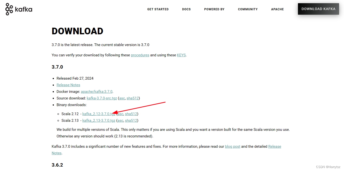 从 Kafka 官网下下载对应的文件:Apache Kafka 官网下载地址