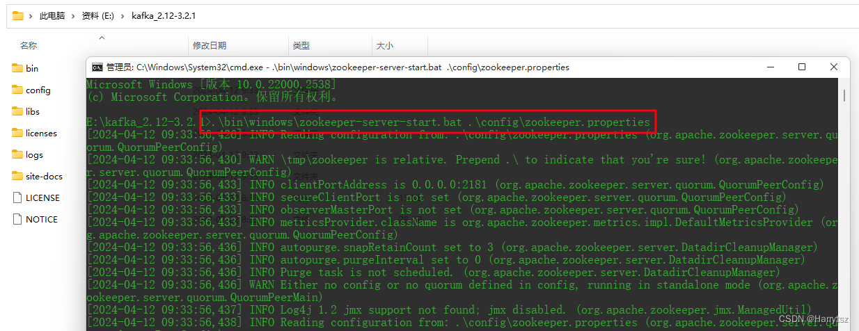 .\bin\windows\zookeeper-server-start.bat .\config\zookeeper.properties