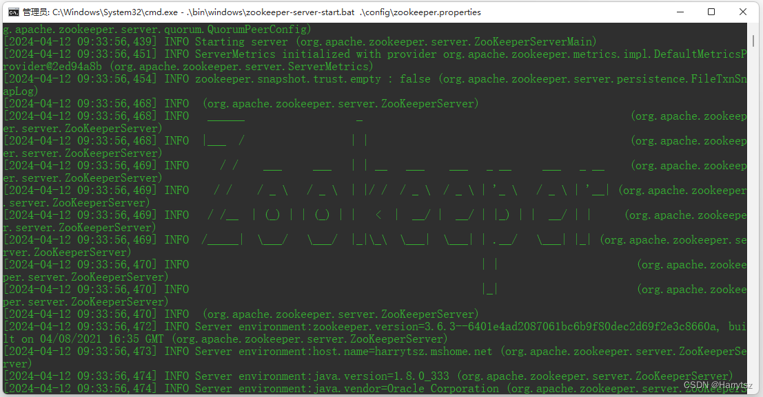 出现如下信息,表示 Zookeeper 服务启动成功: